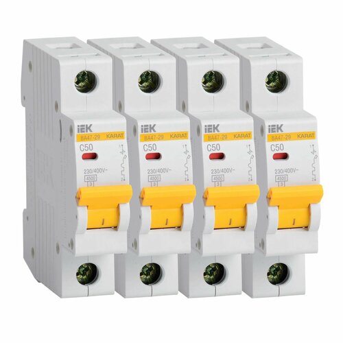 Выключатель автоматический однополюсный 50А С ВА47-29 4.5кА х 4 шт.: сравнение цен, характеристики, фото, актуальное наличие и цены.