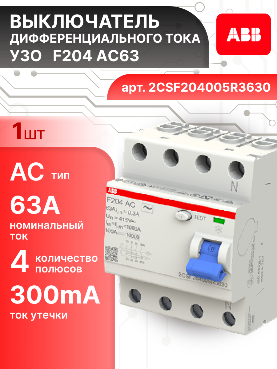 Выключатель диф тока УЗО 4P (4П) 63А 300 мА АС электромеханическое F202 2CSF204005R3630 ABB 1шт: сравнение цен, характеристики, фото, актуальное наличие и цены.