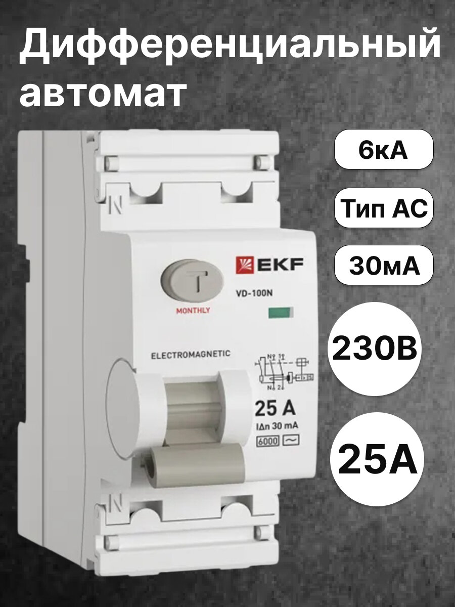 Выключатель дифференциального тока EKF PROXIMA двухполюсный 25А 30мА тип AC 6кА E1026M2530: сравнение цен, характеристики, фото, актуальное наличие и цены.