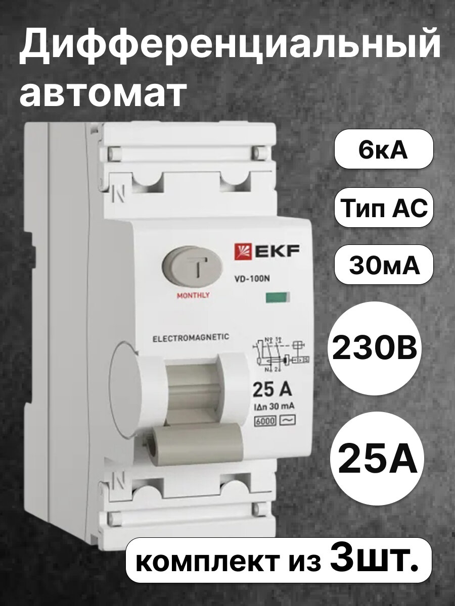 Выключатель дифференциального тока EKF PROXIMA двухполюсный 25А 30мА тип AC 6кА E1026M2530 (комплект из 3 шт.): сравнение цен, характеристики, фото, актуальное наличие и цены.