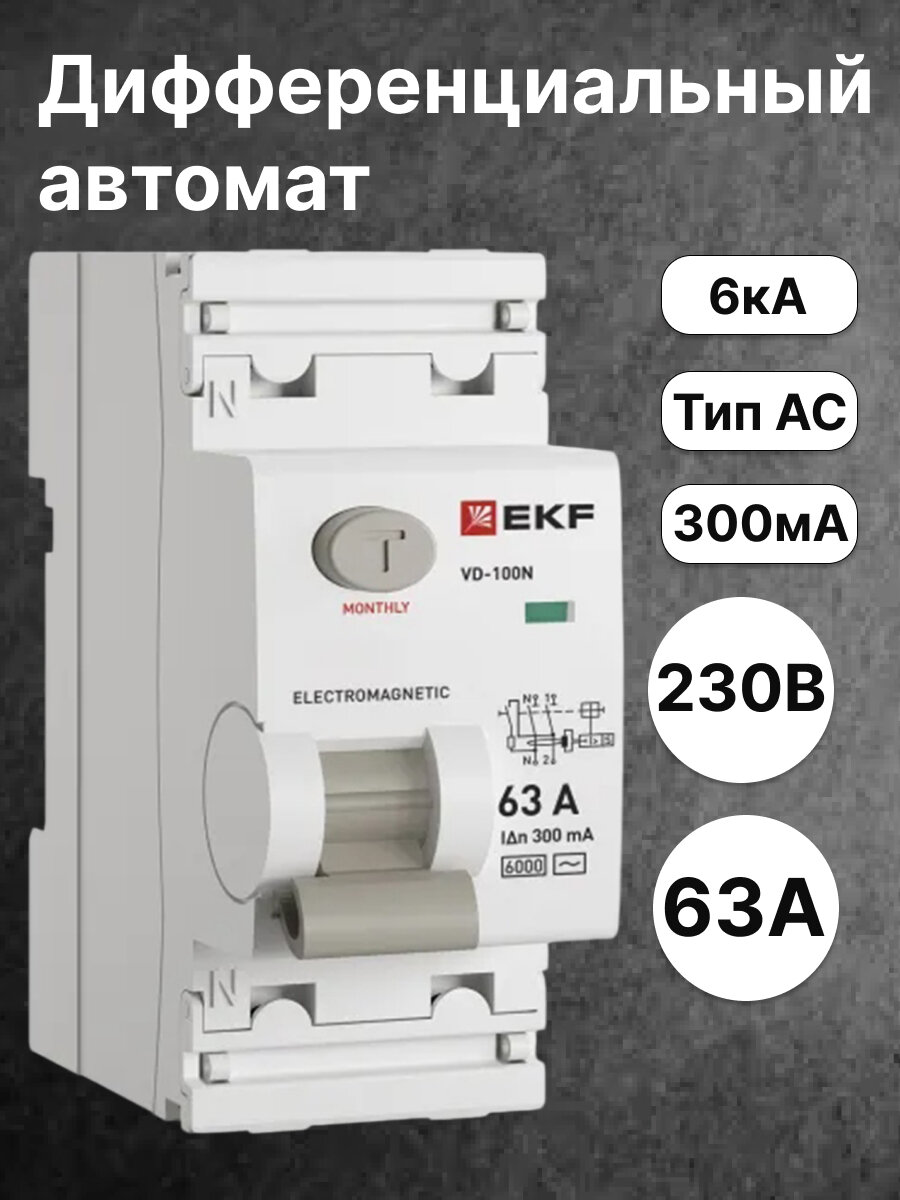 Выключатель дифференциального тока EKF PROXIMA двухполюсный 63А 300мА 6кА тип AC E1026M63300: сравнение цен, характеристики, фото, актуальное наличие и цены.