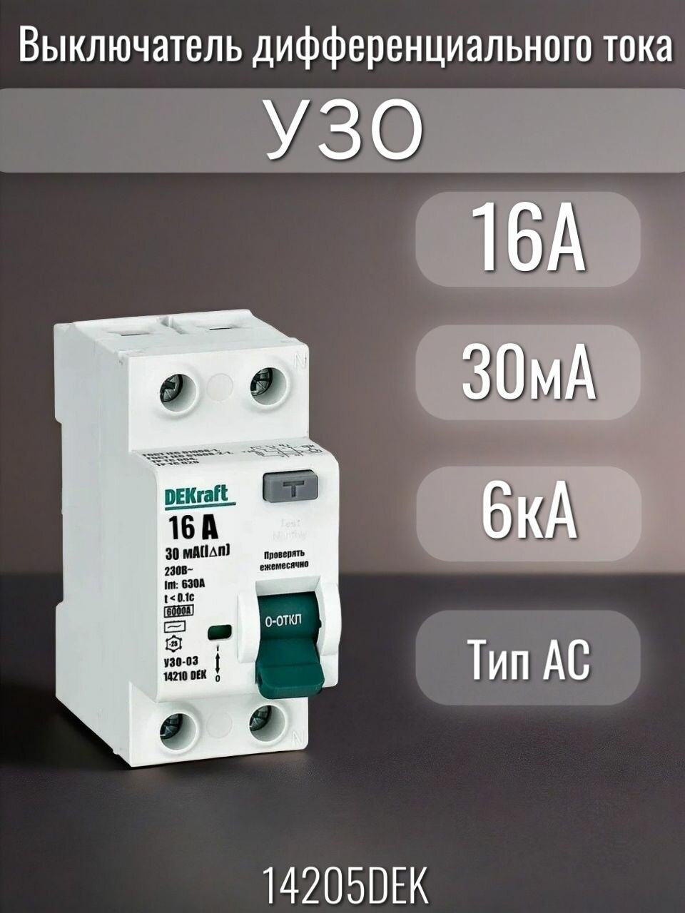 Выключатель дифференциального тока (УЗО) 2п 16А 30мА тип AC 6кА УЗО-03 DEKraft: сравнение цен, характеристики, фото, актуальное наличие и цены.