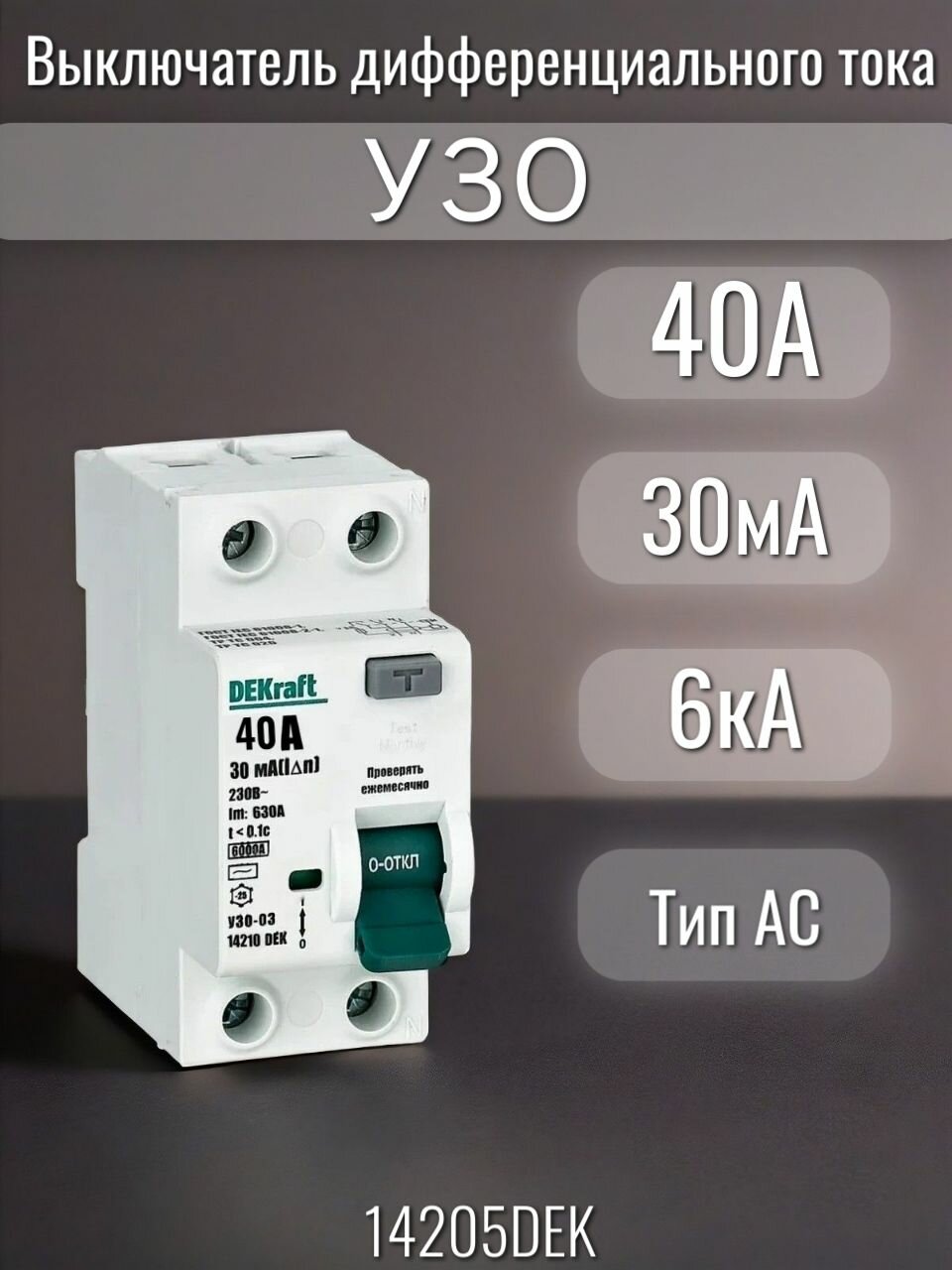 Выключатель дифференциального тока (УЗО) 2п 40А 30мА тип AC 6кА УЗО-03 DEKraft: сравнение цен, характеристики, фото, актуальное наличие и цены.