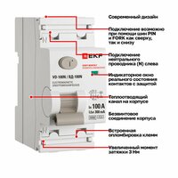 Устройство защитного отключения (УЗО) EKF PROXIMA ВД-100N представляет собой выключатель дифференциального тока, незаменимый элемент в современных системах электроснабжения. Он активно используется как в бытовых, так и в промышленных сетях для обеспечения безопасности и надежности электроустановок. Продукт способен обеспечить надежную защиту электрооборудования и человека от возможных аварийных ситуаций, связанных с утечкой тока. Электромеханический дифференциальный выключатель EKF PROXIMA ВД-100N решает ряд критически важных задач. Он обеспечивает защиту людей от поражения электрическим током при случайном прикосновении к открытым проводящим частям электроустановки, а также предотвращает возгорания и пожары, которые могут возникать из-за нарушений изоляции или коротких замыканий. Устройство защитного отключения также предохраняет электроустановки при повреждении изоляции проводников и других неисправностях. Технические характеристики данного УЗО включают в себя двухполюсное исполнение 2P, номинальный отключающий ток 100А и ток утечки 300мА. Устройство соответствует типу A, что позволяет ему распознавать переменные и постоянные дифференциальные токи. Дифференциальный выключатель рассчитан на рабочие температуры от -40 до +55°С и имеет номинальную отключающую способность 6кА. Токоведущие части устройства выполнены из высококачественной меди, что обеспечивает надежность и долговечность в работе. Уникальные преимущества УЗО EKF PROXIMA ВД-100N включают в себя возможность подключения при помощи шин PIN и FORK как сверху, так и снизу, что облегчает инсталляцию и делает её более гибкой. Подключение нейтрального проводника осуществляется слева, что является стандартной практикой для облегчения монтажа. Теплоотводящий канал на корпусе способствует эффективному отводу тепла, предотвращая перегрев устройства. Индикаторное окно реального состояния контактов с защитой позволяет быстро оценить состояние устройства и обеспечивает дополнительную безопасность. Устройство имеет встроенную опломбировку клемм, что предотвращает несанкционированный доступ и изменение настроек. Увеличенный момент затяжки 3 Нм обеспечивает надежное соединение проводников, а безвинтовое соединение корпуса упрощает техническое обслуживание. Усиленные клеммы и винты увеличивают прочность и надежность крепления. Дифференциальный выключатель EKF PROXIMA ВД-100N соответствует международным стандартам ГОСТ 31601.2.1 (IEC 61008–2–1), IEC 61008–1; RoHS, EAC, CE, что подтверждает его высокое качество и надежность. Более современный дизайн устройства не только улучшает внешний вид, но и способствует легкости его интеграции в различные интерьеры. Сочетание технических характеристик и уникальных преимуществ делает УЗО EKF PROXIMA ВД-100N надежным и функциональным решением для защиты электрических цепей и безопасности пользователей.