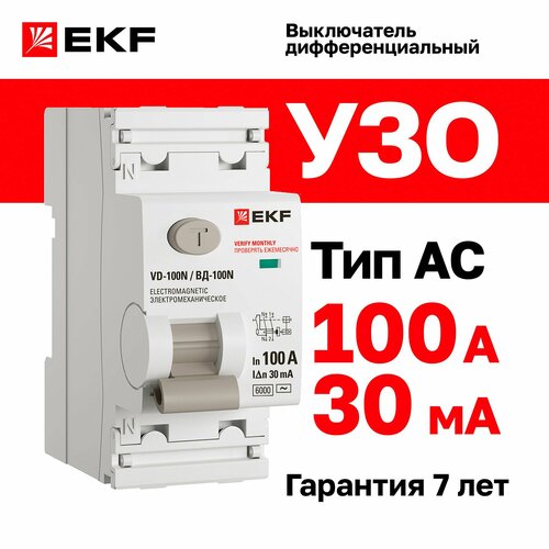 Устройство защитного отключения (УЗО) EKF PROXIMA ВД-100N представляет собой выключатель дифференциального тока, который является важной частью системы электробезопасности в жилых, коммерческих и промышленных помещениях. Основной задачей дифференциального выключателя является быстрое обесточивание электрических цепей при обнаружении токов утечки, что помогает защитить человека от поражения электрическим током и предотвращать возникновение пожаров.