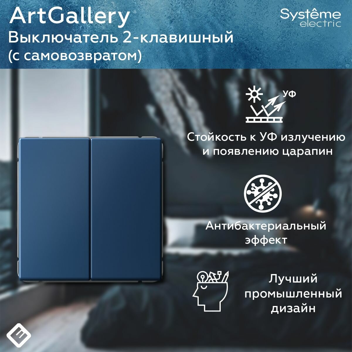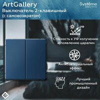 Выключатель двухклавишный с самовозвратом (Аквамарин), Systeme Electric ArtGallery: сравнение цен, характеристики, фото, актуальное наличие и цены.