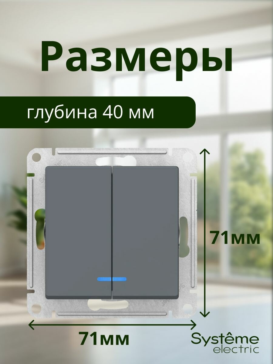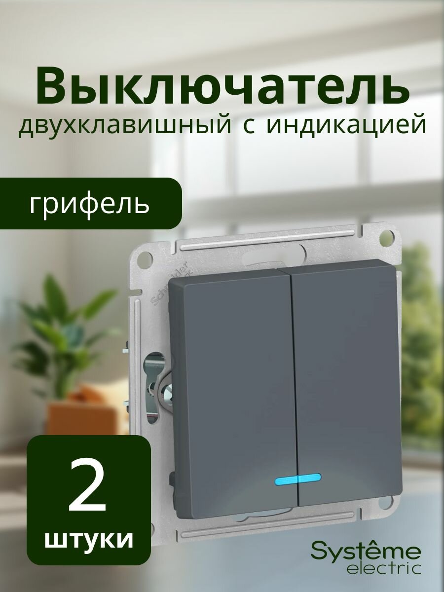 Выключатель двухклавишный с индикацией грифель Atlas Design, 2 шт, Schneider Electric/Systeme Electric ATN000753: сравнение цен, характеристики, фото, актуальное наличие и цены.