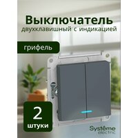 Купить Выключатель двухклавишный с индикацией грифель Atlas Design, 2 шт, Schneider Electric/Systeme Electric ATN000753 с доставкой по всей России.