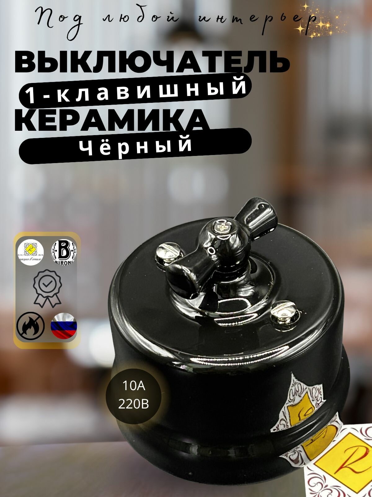 Выключатель ретро BIRONI Бирони Лизетта 1-клавишный, поворотный, керамика, цвет черный B1-200-03: сравнение цен, характеристики, фото, актуальное наличие и цены.