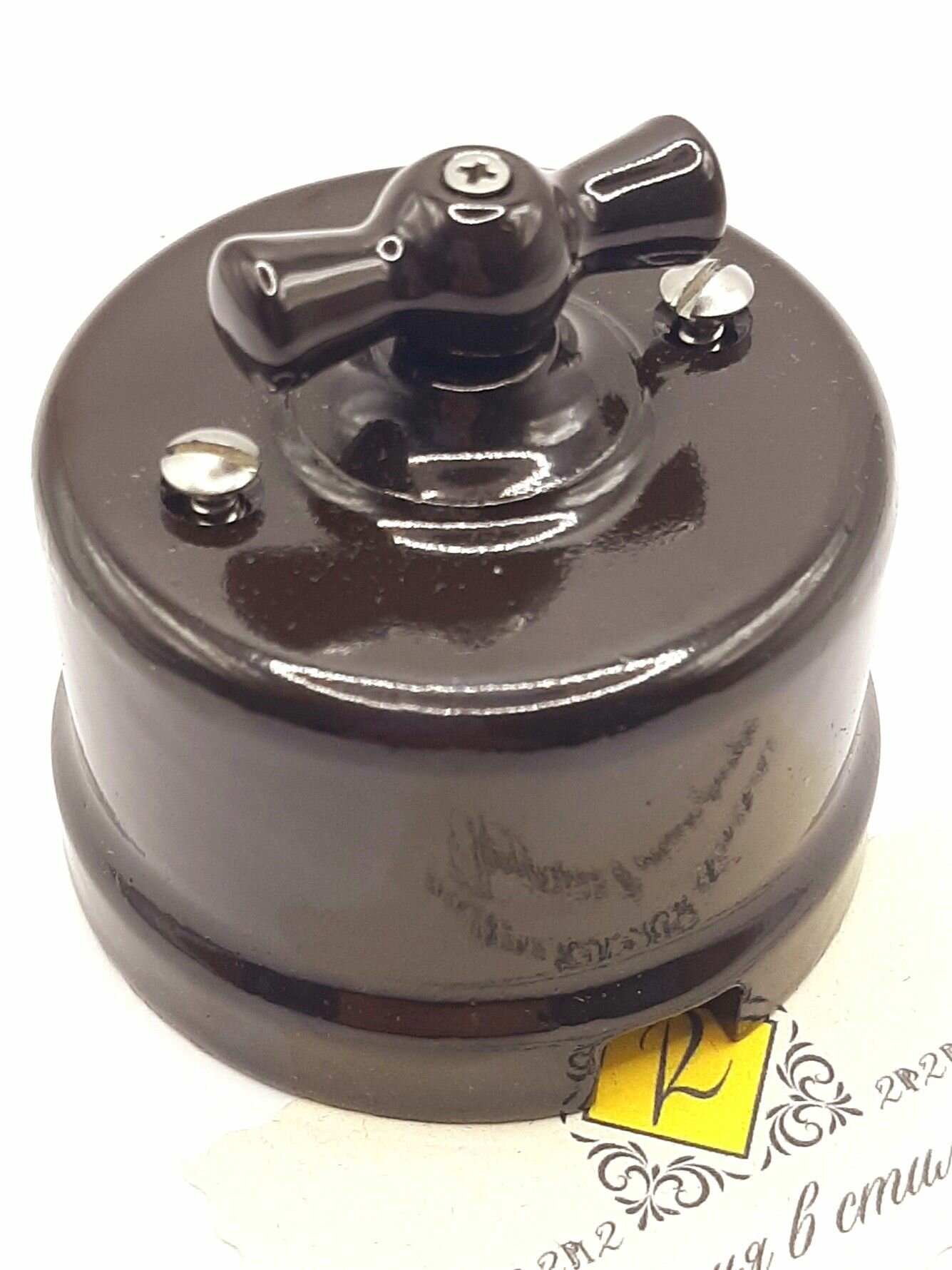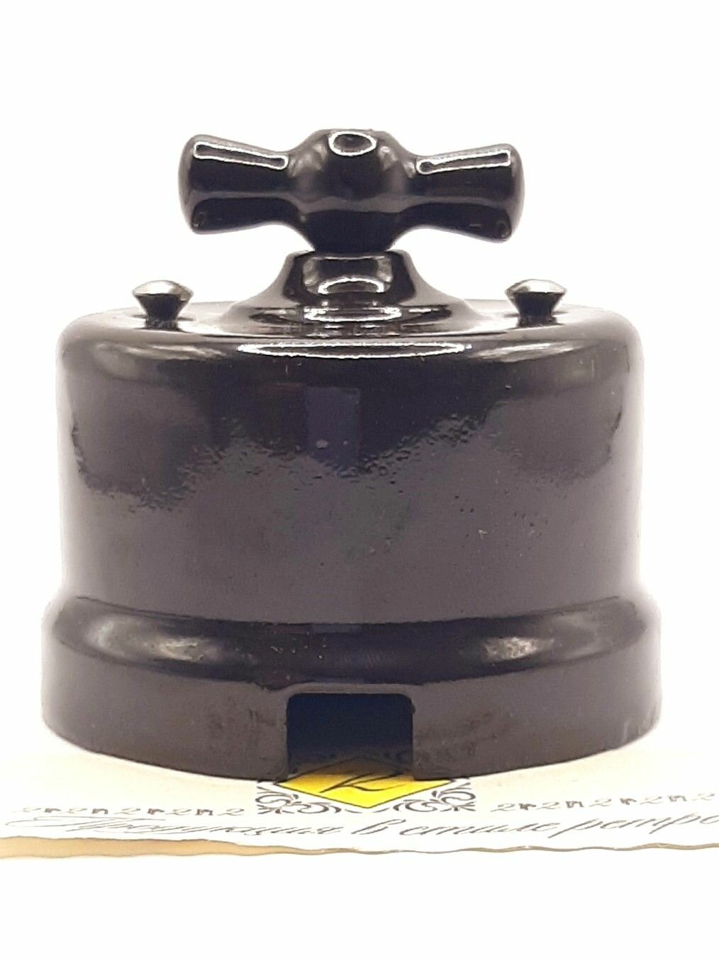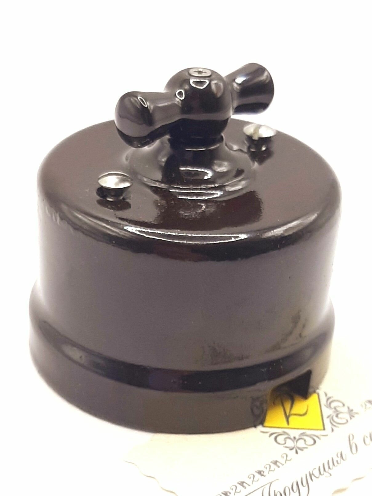 Купить Выключатель ретро BIRONI Бирони Лизетта 1-клавишный, поворотный, керамика, цвет коричневый B1-200-02 с доставкой по всей России.