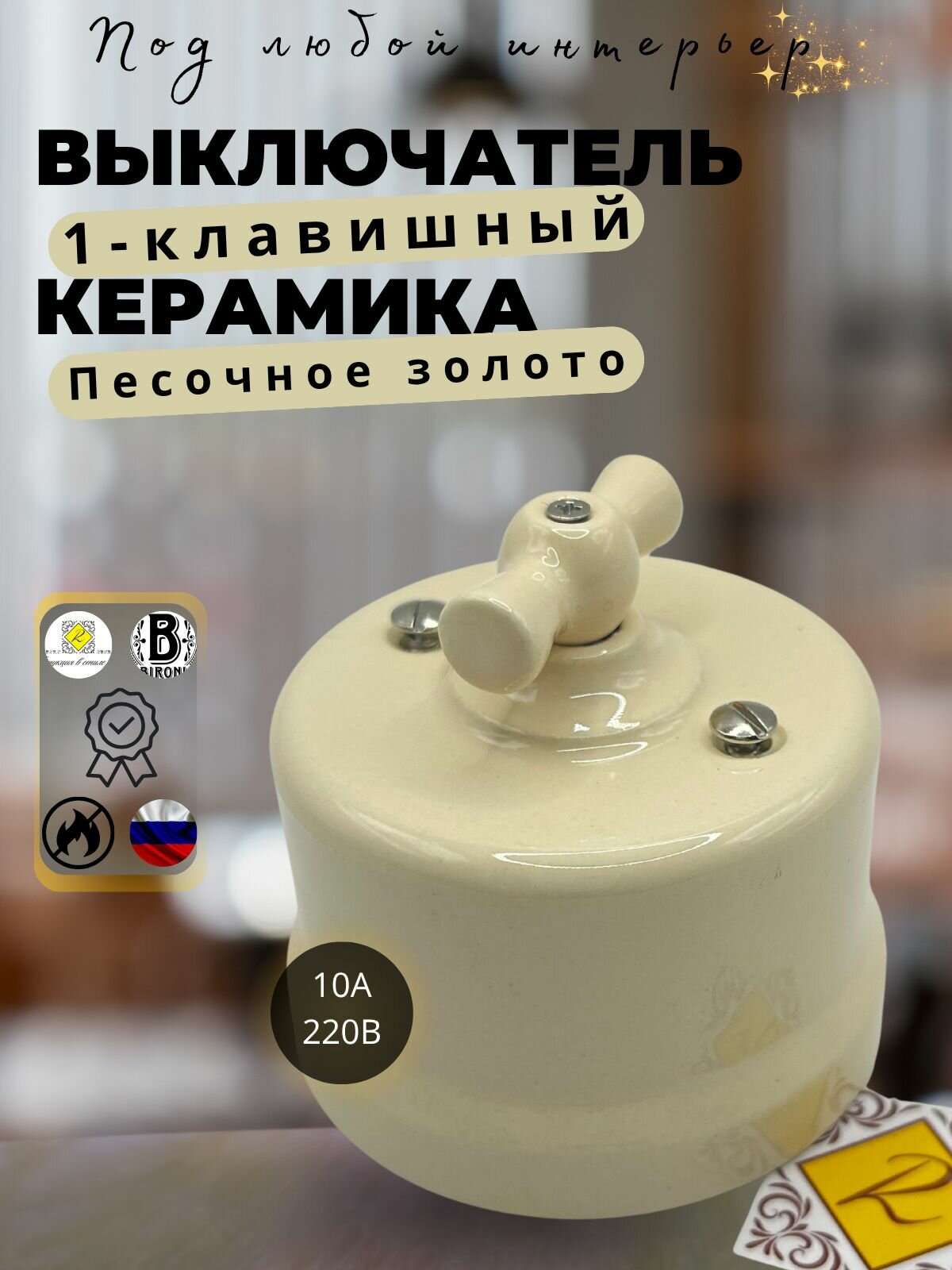 Выключатель ретро BIRONI Бирони Лизетта 1-клавишный, поворотный, керамика, цвет песочное золото B1-200-04: сравнение цен, характеристики, фото, актуальное наличие и цены.