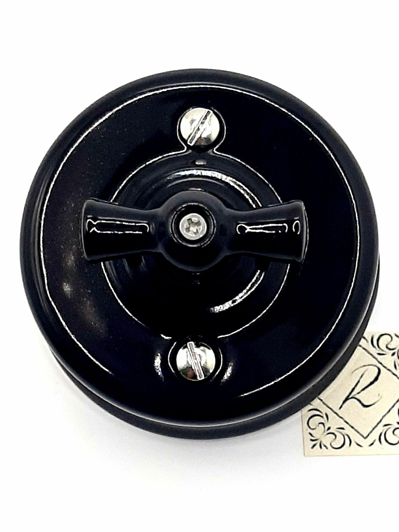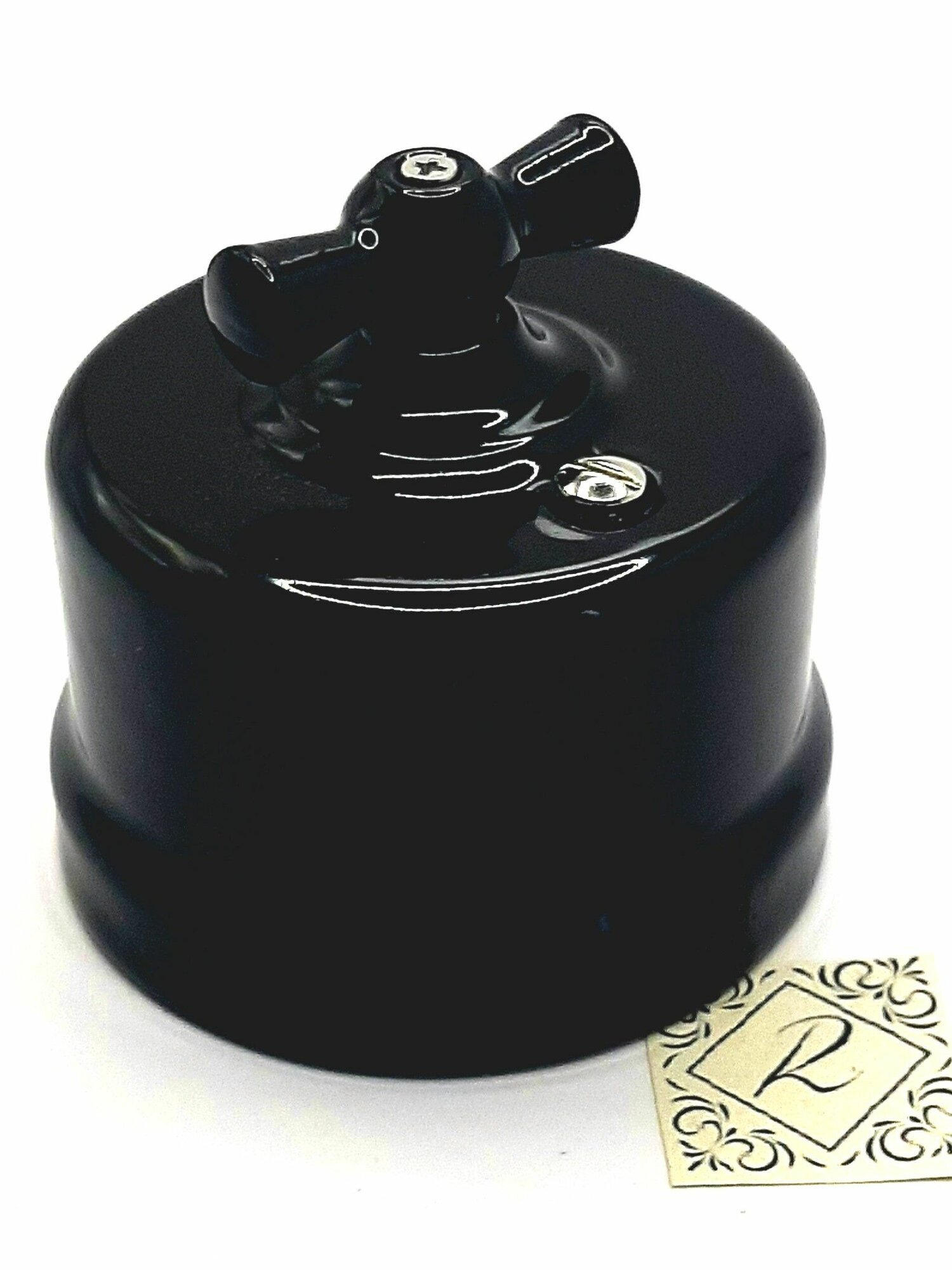 Купить Выключатель ретро BIRONI Бирони Лизетта 2-клавишный, поворотный, керамика, цвет черный B1-202-03 с доставкой по всей России.