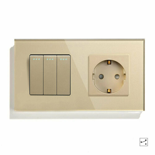 Купить Выключатель с розеткой, 3 клавиши 1 розетка, 2 поста (М3+1F) рамка стекло 157х86мм цвет золотой с доставкой по всей России. Выключатель с розеткой, 3 клавиши 1 розетка, 2 поста (М3+1F) рамка стекло 157х86мм цвет золотой: сравнение цен, характеристики, фото, актуальное наличие и цены.