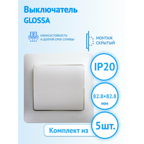 Купить Выключатель Schneider Electric Glossa одноклавишный перламутр (комплект из 5 шт) с доставкой по всей России. Выключатель Schneider Electric Glossa одноклавишный перламутр (комплект из 5 шт): сравнение цен, характеристики, фото, актуальное наличие и цены.