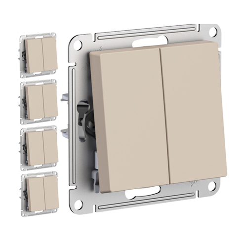 Выключатель электрический Systeme Electric Atlas Design 2-клавишный, 10А, 10 AX, Песочный ATN001251 — 5 шт.: сравнение цен, характеристики, фото, актуальное наличие и цены.