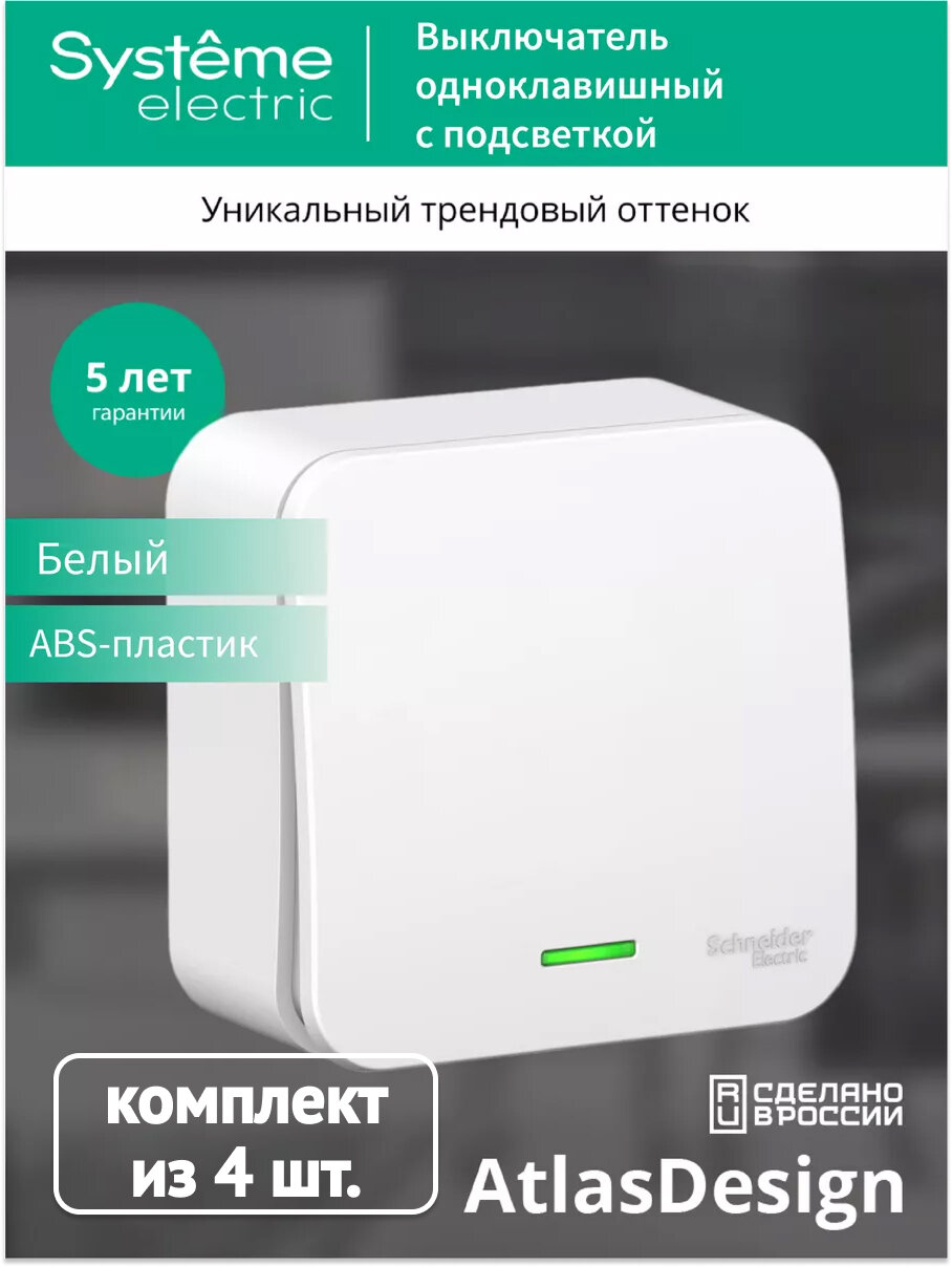 Выключатель Systeme Electric Blanca одноклавишный, с индикацией, 10А, 250В, белый (комплект из 4 шт.): сравнение цен, характеристики, фото, актуальное наличие и цены.