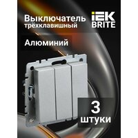 Купить IEK Выключатель BR-V30-0-10-K47 трёхклавишный, квадратный, настенный 10А алюминий, 3 штуки с доставкой по всей России.