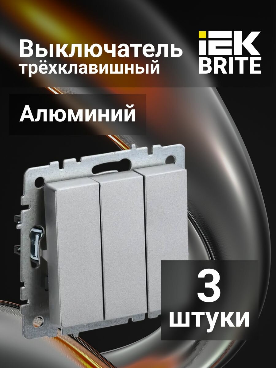 IEK Выключатель BR-V30-0-10-K47 трёхклавишный, квадратный, настенный 10А алюминий, 3 штуки: сравнение цен, характеристики, фото, актуальное наличие и цены.