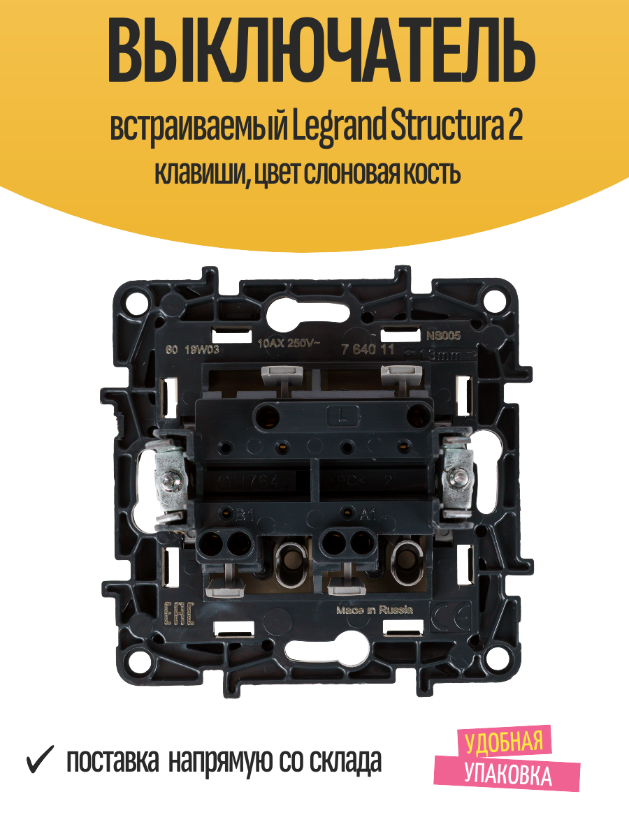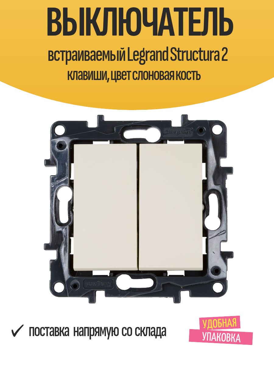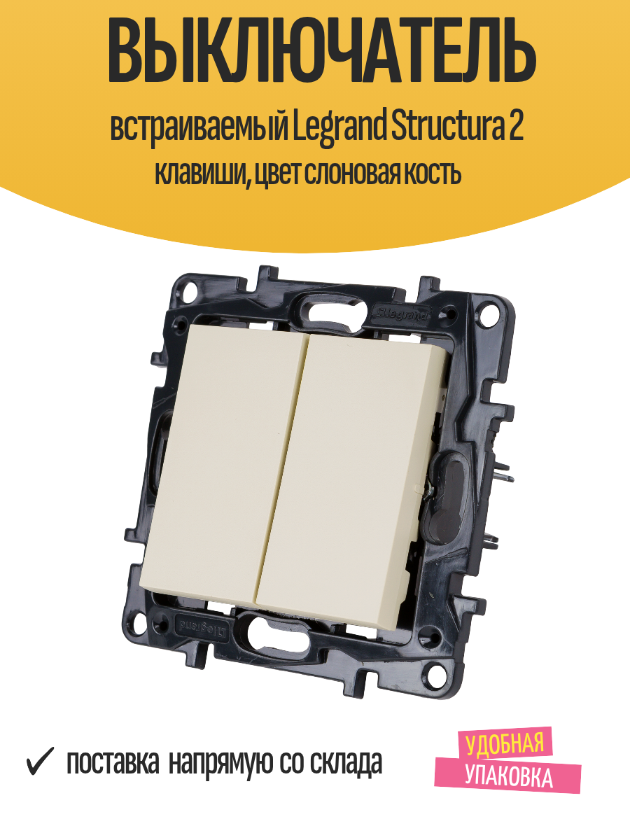 Купить Выключатель встраиваемый Legrand Structura 2 клавиши, цвет слоновая кость с доставкой по всей России.