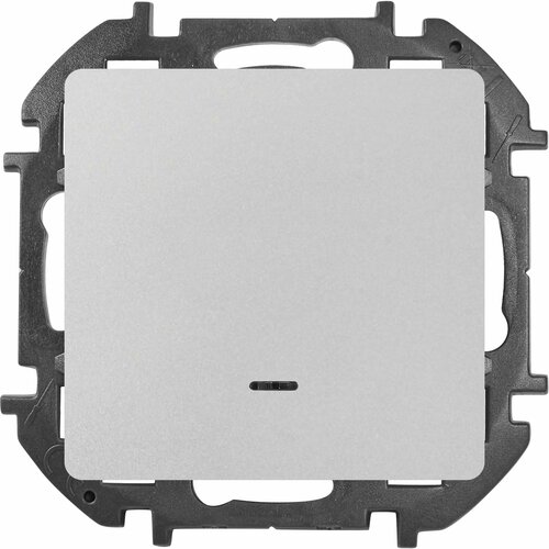 Выключатель одноклавишный с подсветкой/индикацией LEXMAN LILIAN для скрытого монтажа, цвет "Алюминий", номинальный ток 10 А, напряжение ~250 В.