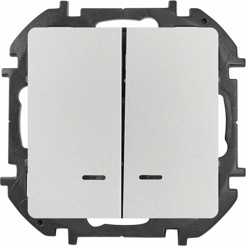 Выключатель двухклавишный с подсветкой/индикацией LEXMAN LILIAN для скрытого монтажа, цвет "Алюминий", номинальный ток 10 А, напряжение ~250В.