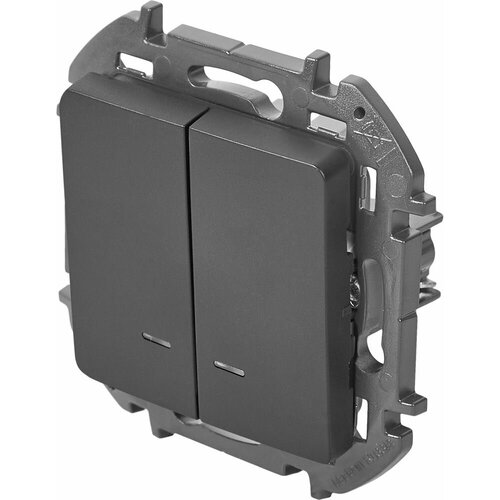 Выключатель двухклавишный с подсветкой/индикацией LEXMAN LILIAN для скрытого монтажа, цвет "Антрацит", номинальный ток 10 А, напряжение ~250В.