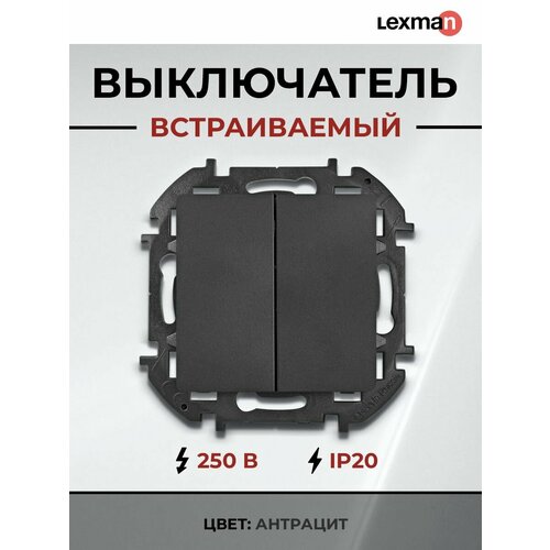 Выключатель двухклавишный LEXMAN LILIAN для скрытого монтажа, цвет "Антрацит", номинальный ток 10 А, напряжение ~250В.