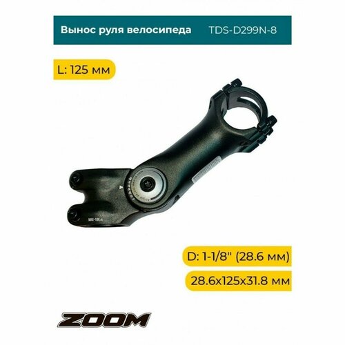 Купить Вынос руля Zoom TDS-D299N-8/FOV/ISO-C регулируемый, кованый алюминий, 28,6 х 125 х 31,8мм х 0°~+60°, высота 41мм, матовый чёрный с доставкой по всей России.