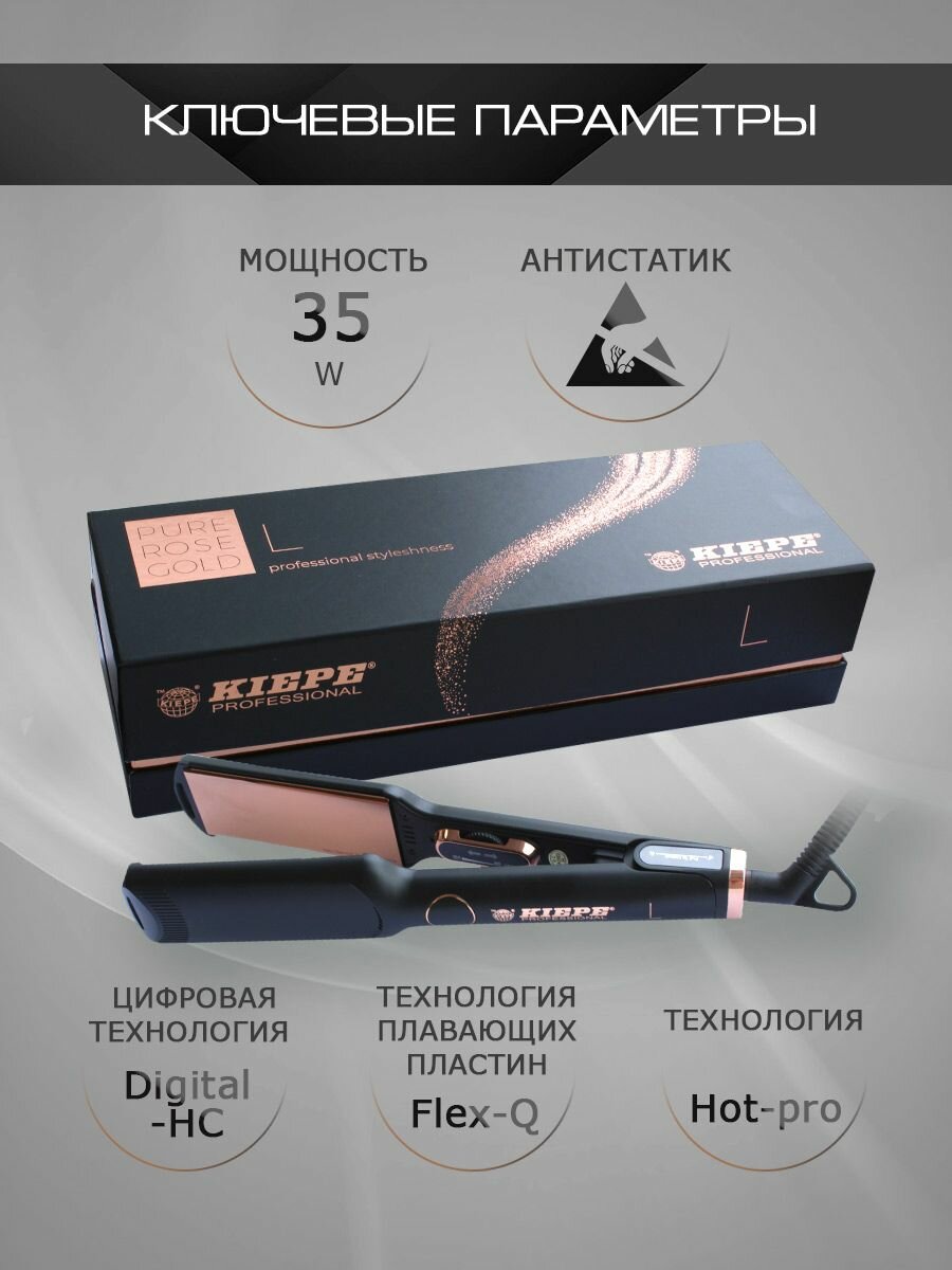 Выпрямитель для волос профессиональный Kiepe Professional Pure Rose Gold L 4,3×10см. 40W.: сравнение цен, характеристики, фото, актуальное наличие и цены.