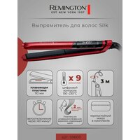Выпрямитель для волос Remington Silk S9600, цифровой контроль температуры, функция TurboBoost, функция памяти, готовность к работе за 10 секунд, автоматическое отключение, красный/черный