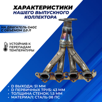 - Выпускной коллектор Хендай Туксон 1 рестайлинг/до рестайлинг, двигатель G4GC 2,0 л, паук 4-1 Stinger Auto вставка для замены штатного катализатора Hyundai Tucson