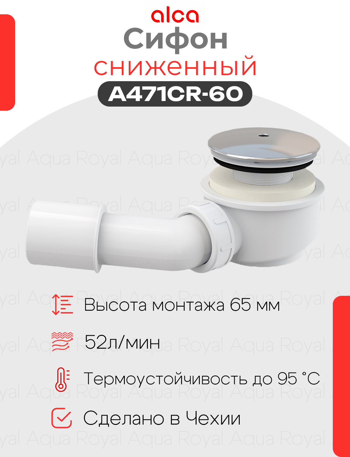 Выпускной комплект для душевого поддона, хромированный пластик Alcaplast A471CR-60: сравнение цен, характеристики, фото, актуальное наличие и цены.