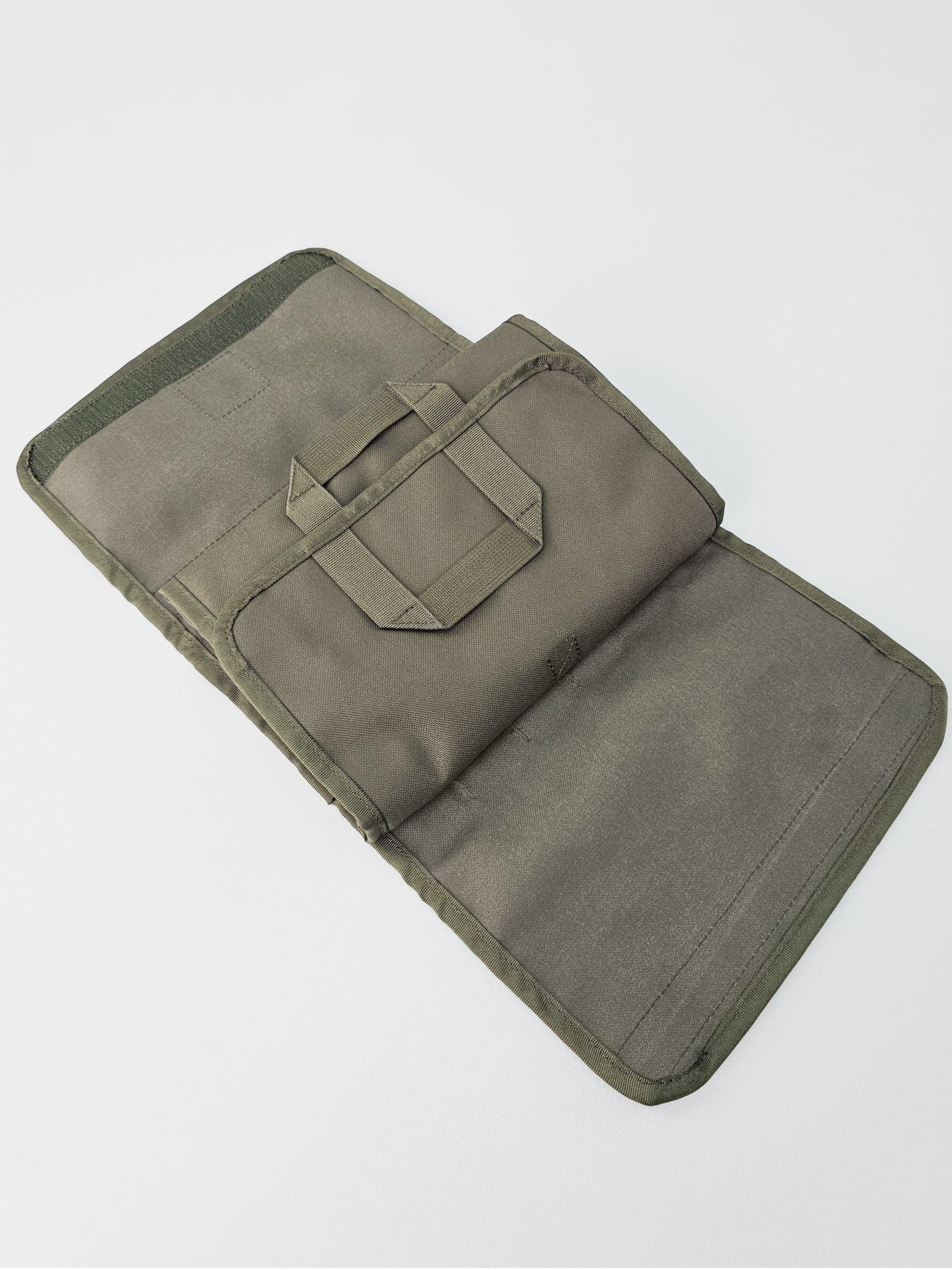 Подсумок предназначен для размещения на боевом поясе в районе поясницы. Доступ к содержимому осуществляется путем вырывания основной части из фиксирующей муфты с левой или правой стороны.