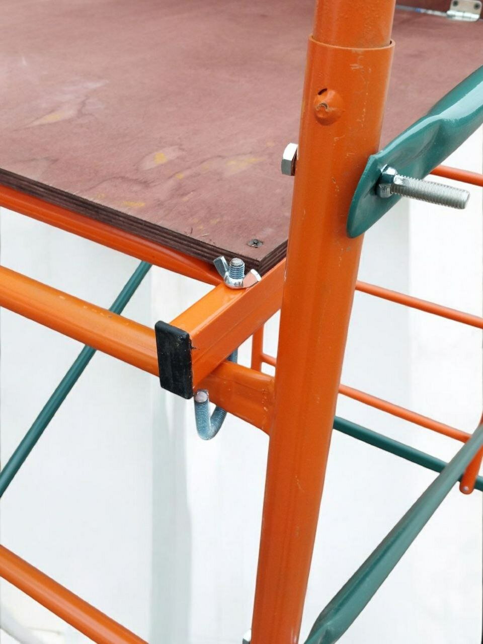 Три секции по 1,4м. дают конструкцию высотой 4,2м, что позволяет работать на высоте 5,2м. при расположении настила на 3,2м.