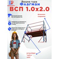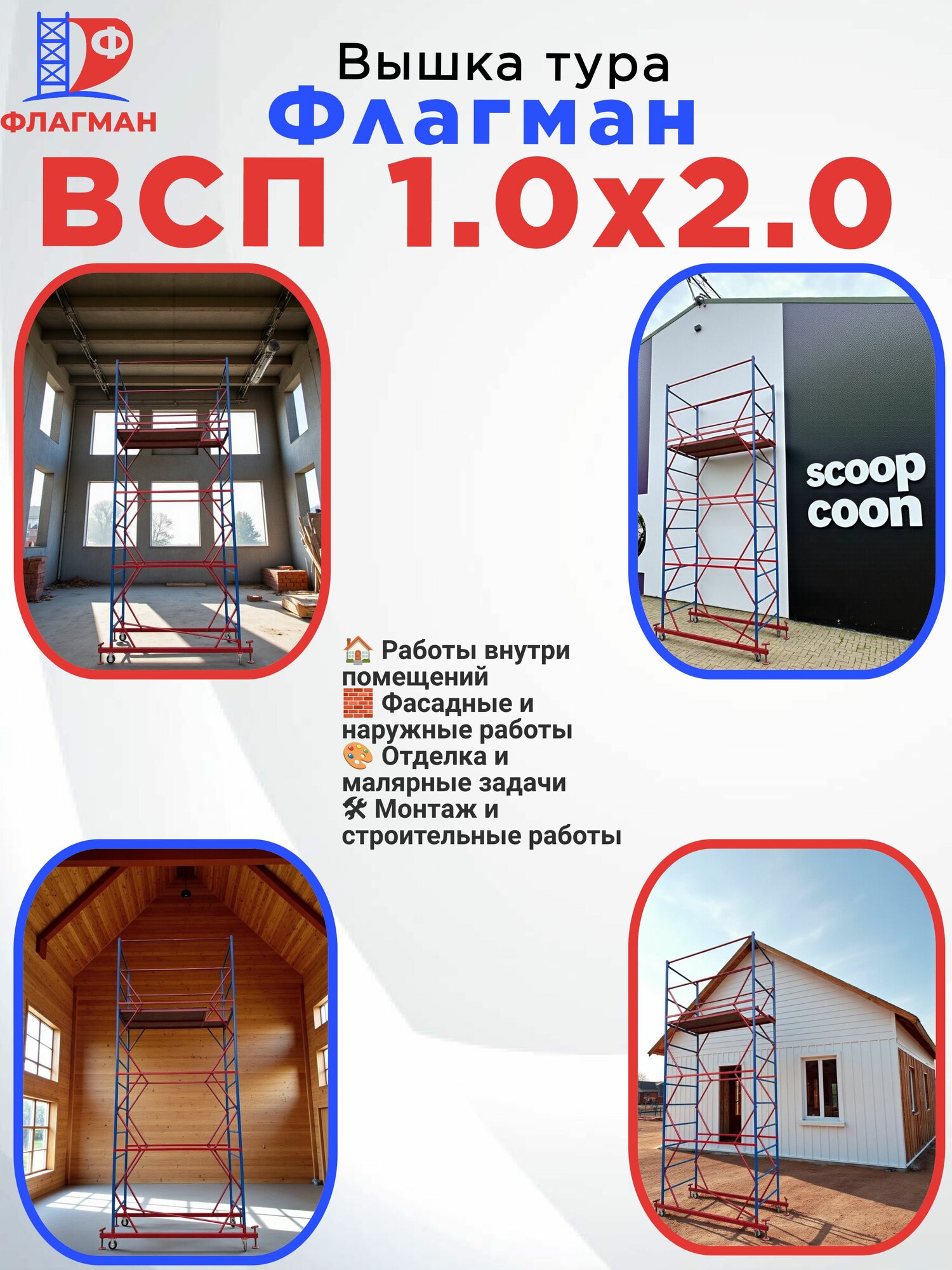 Вышка строительная флагман ВСП-1.0 (базовый блок + 5 секций) — надёжная передвижная вышка-тура для безопасных работ на высоте до 7,7 метра. Подходит для фасадных, отделочных, монтажных и ремонтных работ как внутри помещений, так и на улице.