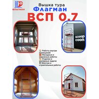 Вышка-тура строительная Флагман ВСП-0.7 (2,5 м, базовый блок + 1 секция) Передвижная сборно-разборная вышка-тура предназначена для проведения ремонтных, отделочных и монтажных работ на высоте до 2,5 метра. Конструкция выполнена из прочной стали с антикоррозийным покрытием, устойчива и удобна в сборке. Рабочая площадка размером 0,7 × 1,62 м оснащена настилом с люком и ограждением, обеспечивающим безопасность при работе на высоте. Благодаря колёсам с тормозами и винтовым опорам, вышку можно легко перемещать и устанавливать даже на неровных поверхностях. ✅ Высота установки настила — до 1,2 м ✅ Рабочая высота — до 3 м ✅ Допустимая нагрузка — до 200 кг ✅ Вес комплекта — 55 кг Подходит для: ремонтных, фасадных, монтажных и отделочных работ, установки освещения, прокладки коммуникаций, покраски стен и потолков — как внутри помещений, так и на улице.
