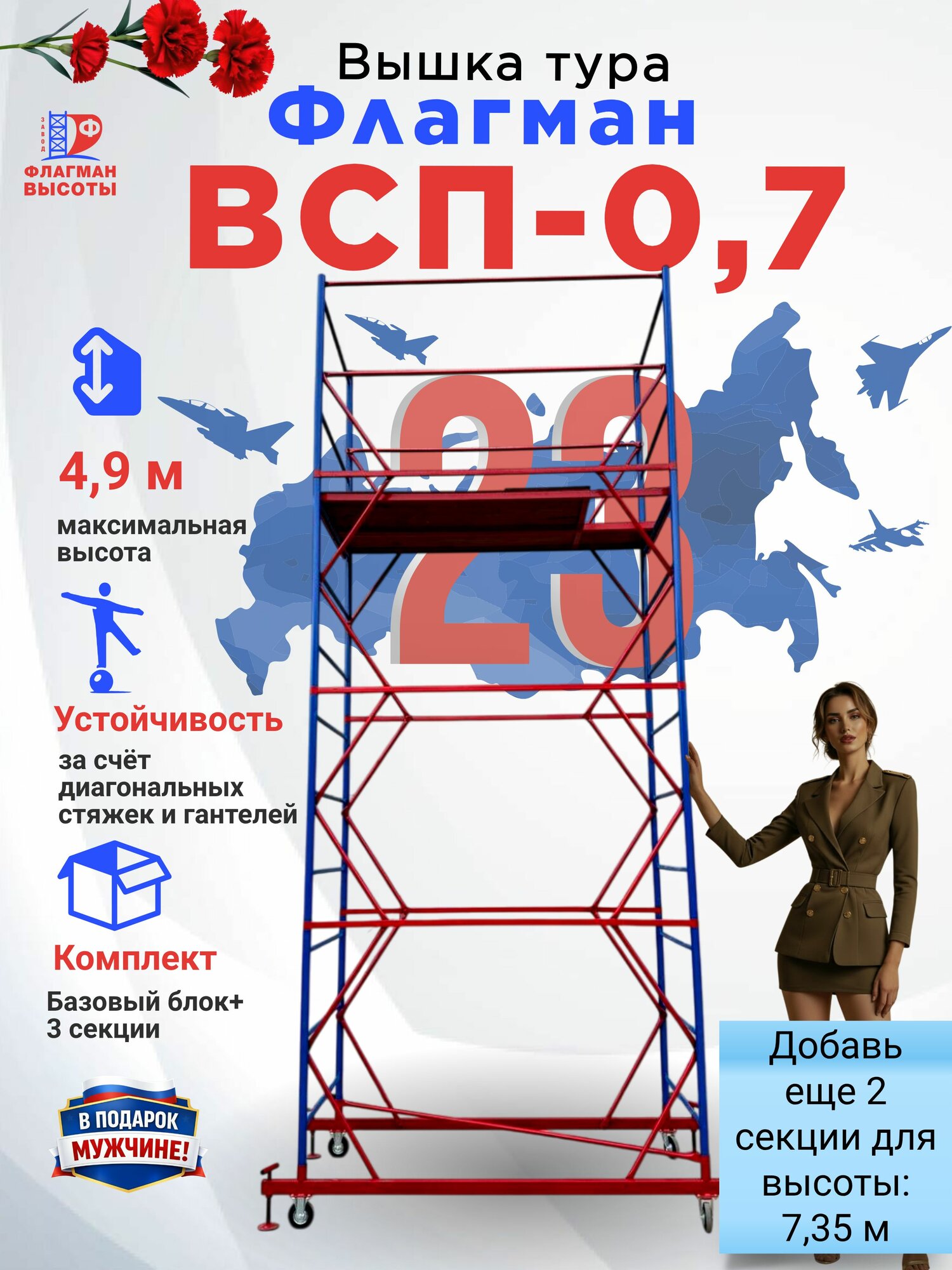 Купить Вышка тура Флагман ВСП-0.7 высота 4,9 м, базовый блок + 3 секции с доставкой по всей России. Вышка тура Флагман ВСП-0.7 высота 4,9 м, базовый блок + 3 секции: сравнение цен, характеристики, фото, актуальное наличие и цены.