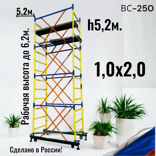 Передвижная сборно-разборная вышка ВС-250/1.0 предназначена для производства монтажных, ремонтных и отделочных работ, как снаружи, так и внутри строений и размещения рабочих и материалов непосредственно в зоне работ.