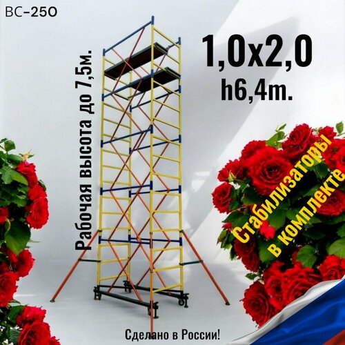 Вышка тура 6,4/7,6м. (1,0х2,0) + стабилизаторы 4шт. ВС-250 Леса строительные сборно-разборные передвижные, помост малярный, подмости, лестница, стремянка.
