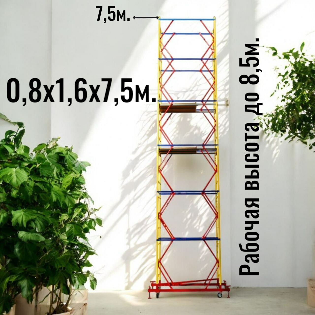 Вышка тура h7.5/8.5m. (0,8х1,6) Леса строительные передвижные на колесах.