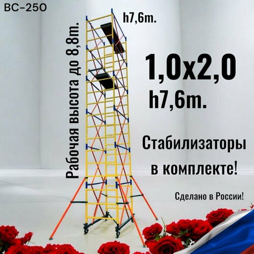 Вышка тура 7,5/8,7м. (1,0х2,0) + стабилизаторы 4шт. ВС-250 Леса строительные сборно-разборные передвижные, помост малярный, подмости, лестница, стремянка.