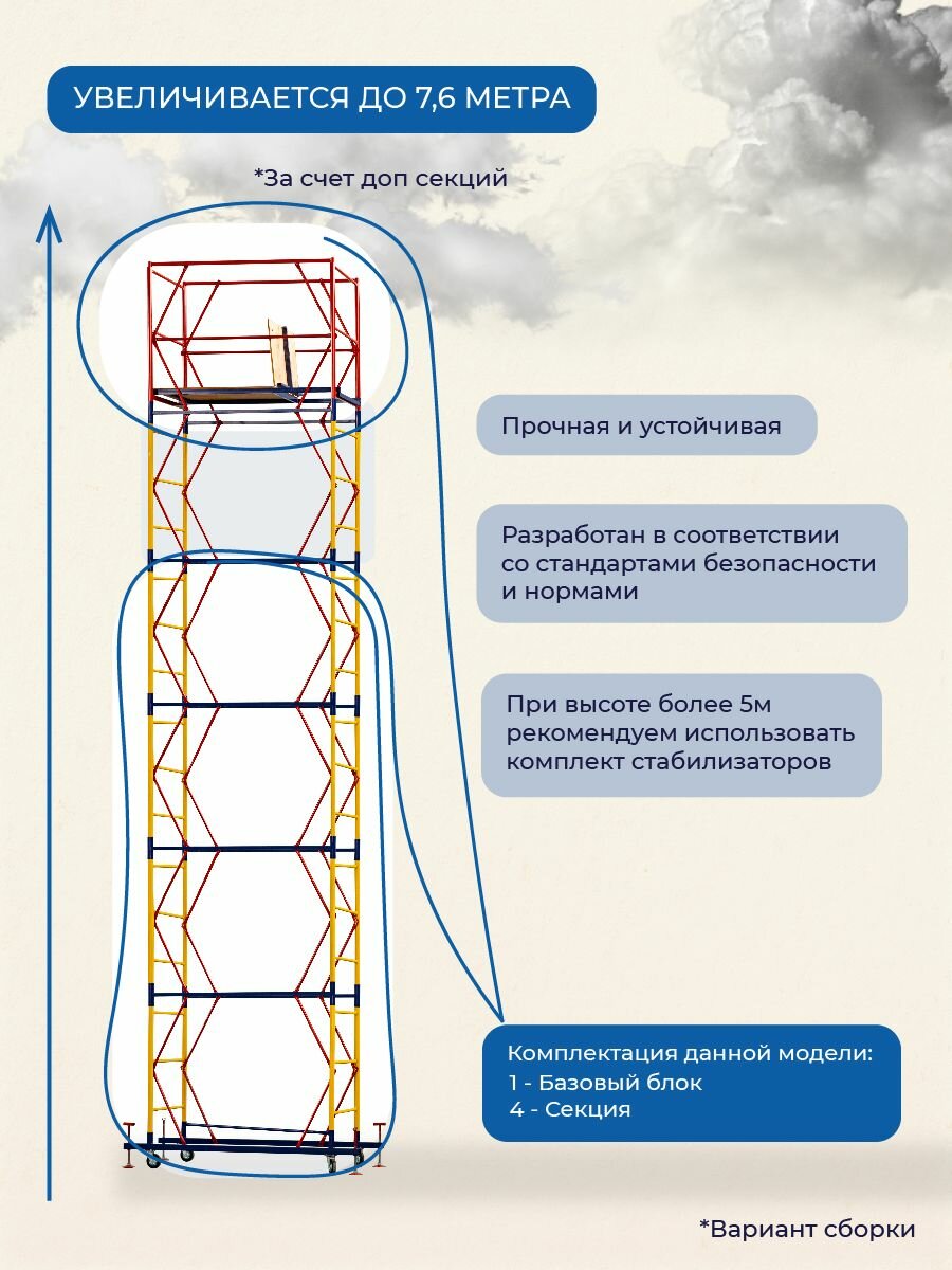 Рекомендуется использовать стабилизаторы при сборе вышки более 5 метров (продаются отдельно)
