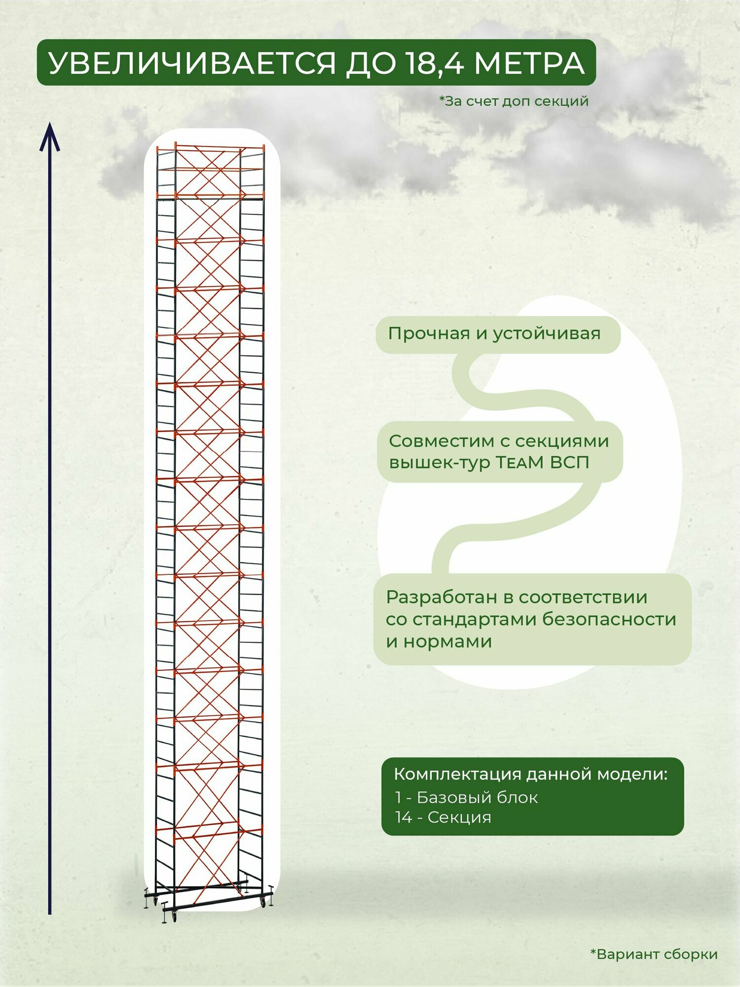 Вышка-тура TeaM ВСП 1.2х2.0 18.4 метров, сборно-разборная с возможностью увеличить высоту: сравнение цен, характеристики, фото, актуальное наличие и цены.