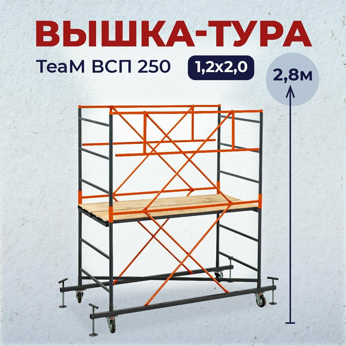 Купить Вышка-тура TeaM ВСП 1.2х2.0 2.8 метров, сборно-разборная с возможностью увеличить высоту с доставкой по всей России.