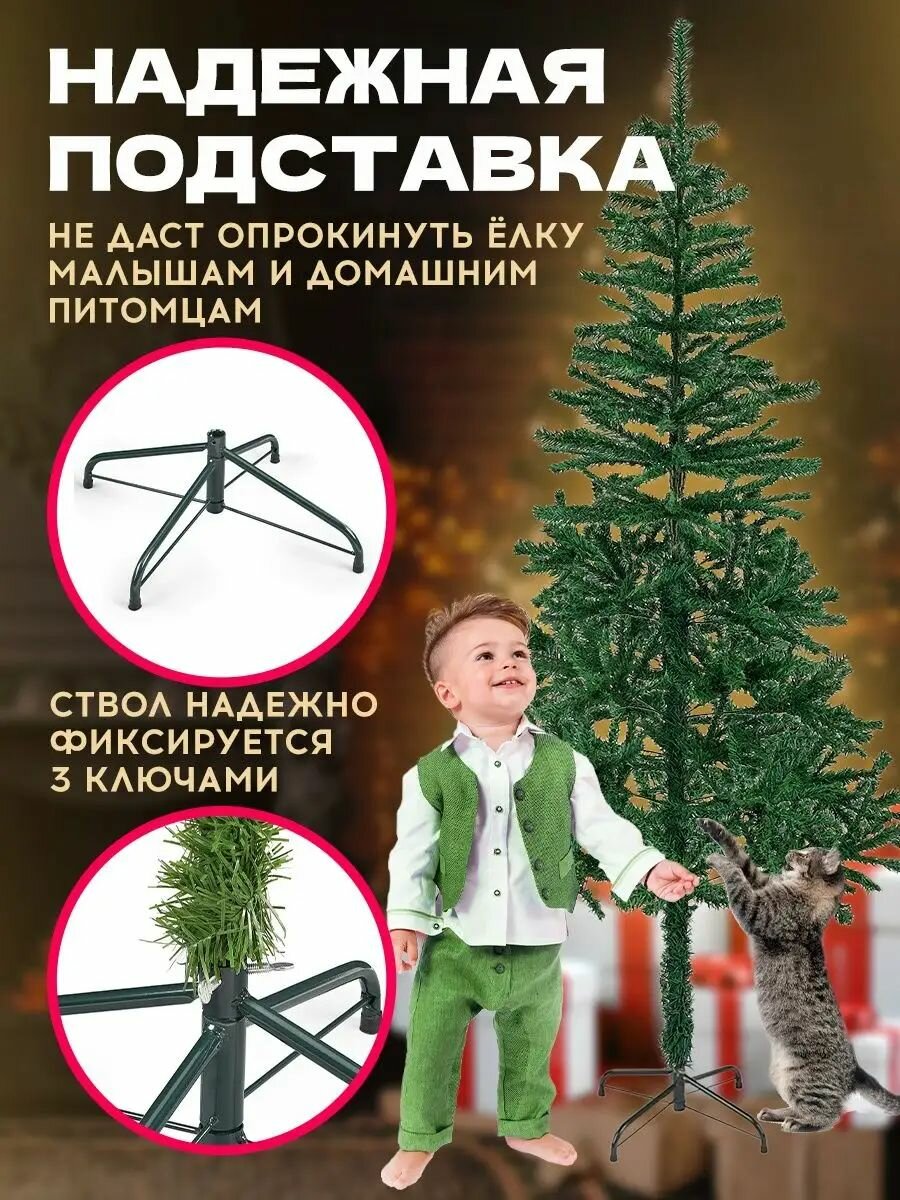 Высокая елка новогодняя искусственная 180 см 300 веток Hogge Home на Новый Год и Рождество ель сосна пушистая с железной основой подставкой напольная из ПВХ пластика и металла, зеленая