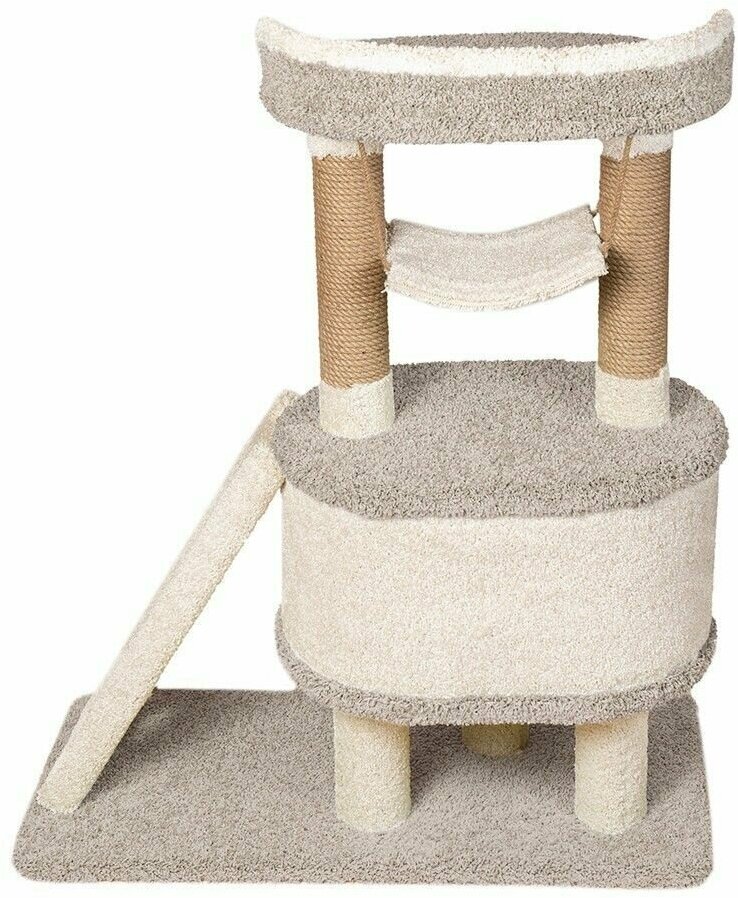 Игровой комплекс станет идеальным домиком для котиков, веселым развлечением и местом, где можно притаиться, перевести дух, вздремнуть. Угловая царапка поможет защитить от животных мебель в доме. Товар имеет лаконичный ненавязчивый дизайн, который впишется в любой интерьер. Прослужит долго. Вы сможете установить его в любой комнате или на большом балконе.