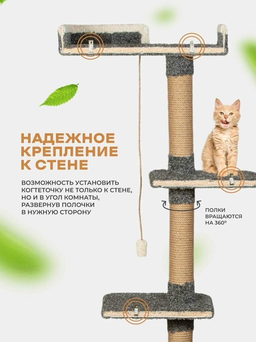 Ваш котик дерёт диван! Точит коготки, снимает стресс, привлекает ваше внимание! Мы поможем Вам с этим справиться и сэкономить семейный бюджет! Вам не придется переклеивать обои, ремонтировать мебель и менять ткань на диване ? Наши когтеточки удобные, компактные, а самое главное качественные Кошачья когтеточка с домиком и игрушкой с надежным креплением произведена в России. В подарок к заказу - кошачья мята. Сборка легкая. Когтедралка выполнена из экологически чистых материалов, которые абсолютно не вызывают аллергии и не имеют посторонних запахов. Высокий столбик диаметром 10 см с плотной обмоткой из джута, с лежанками из мягкого долговечного ковролина отлично подойдет как для взрослого крупного кота, так и для маленьких игривых котят. Изделие на подставке устойчивое и безопасное. Настенный игровой комплекс станет идеальным домиком для котиков, веселым развлечением и местом, где можно притаиться, перевести дух, вздремнуть. Угловая царапка поможет защитить от животных мебель в доме. Товар имеет лаконичный ненавязчивый дизайн, который впишется в любой интерьер. Прослужит долго. Вы сможете установить его в любой комнате или на большом балконе. Сделайте фантастический подарок своему любимцу.