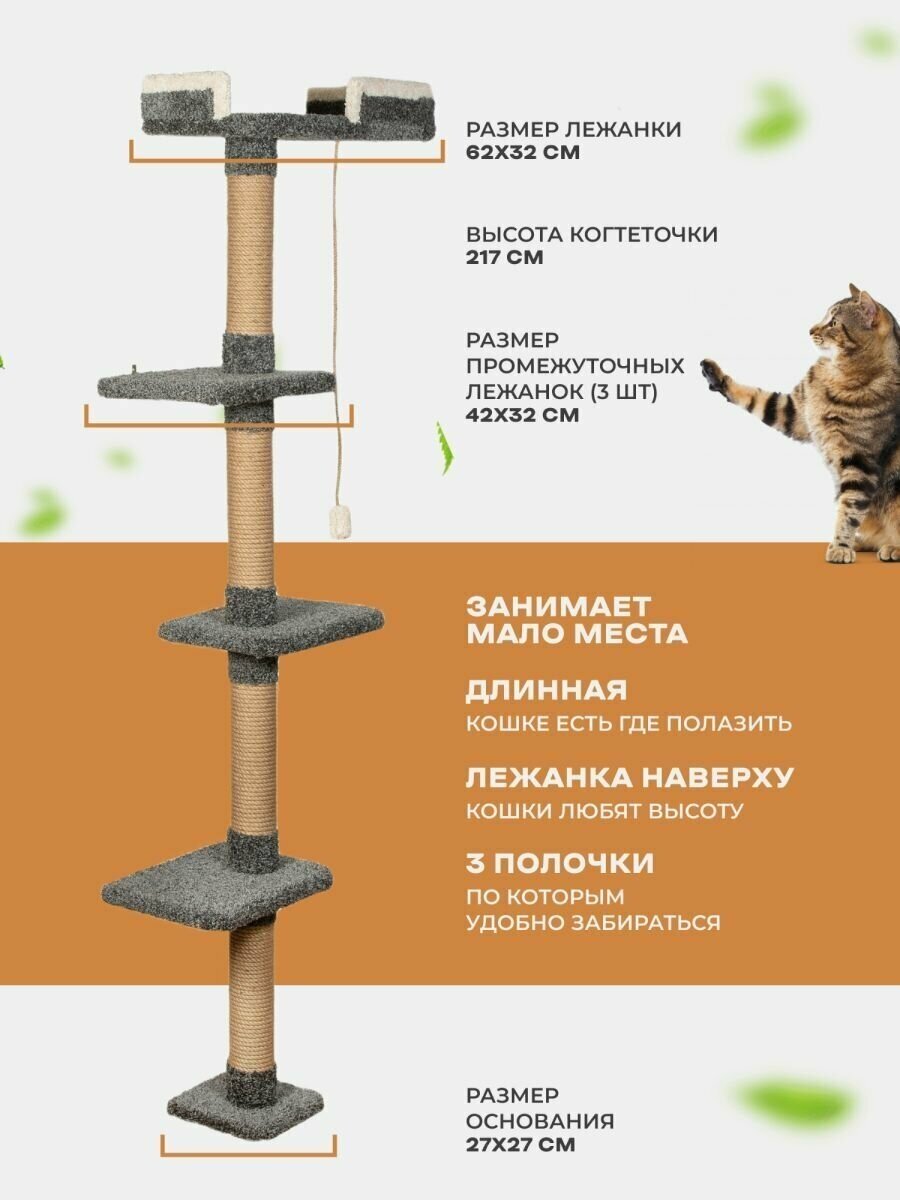 Купить Высокая когтеточка-столбик с лежанкой для кошки угловая «Прыгун» Графит с доставкой по всей России. Высокая когтеточка-столбик с лежанкой для кошки угловая «Прыгун» Графит: сравнение цен, характеристики, фото, актуальное наличие и цены.
