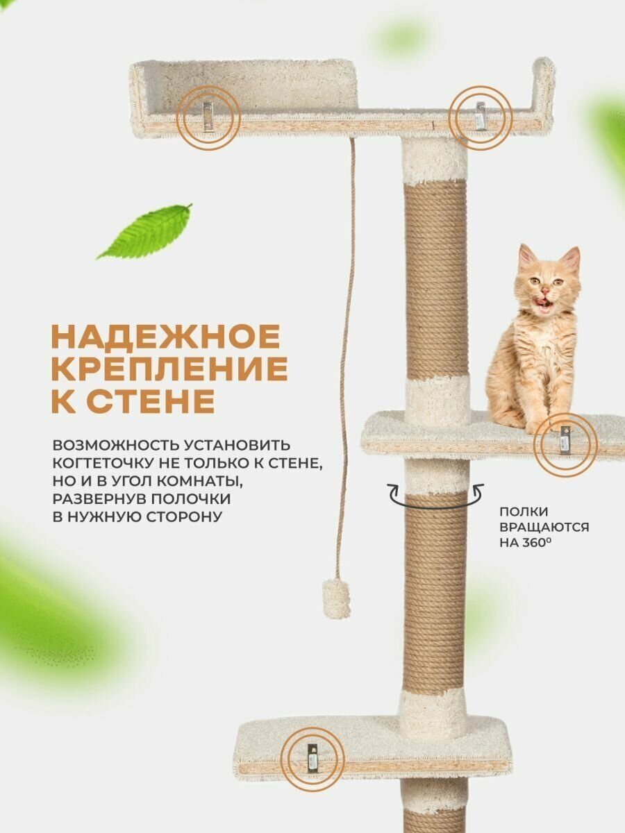 Ваш котик дерёт диван! Точит коготки, снимает стресс, привлекает ваше внимание! Мы поможем Вам с этим справиться и сэкономить семейный бюджет! Вам не придется переклеивать обои, ремонтировать мебель и менять ткань на диване ? Наши когтеточки удобные, компактные, а самое главное качественные Кошачья когтеточка с домиком и игрушкой с надежным креплением произведена в России. В подарок к заказу - кошачья мята. Сборка легкая. Когтедралка выполнена из экологически чистых материалов, которые абсолютно не вызывают аллергии и не имеют посторонних запахов. Высокий столбик диаметром 10 см с плотной обмоткой из джута, с лежанками из мягкого долговечного ковролина отлично подойдет как для взрослого крупного кота, так и для маленьких игривых котят. Изделие на подставке устойчивое и безопасное. Настенный игровой комплекс станет идеальным домиком для котиков, веселым развлечением и местом, где можно притаиться, перевести дух, вздремнуть. Угловая царапка поможет защитить от животных мебель в доме. Товар имеет лаконичный ненавязчивый дизайн, который впишется в любой интерьер. Прослужит долго. Вы сможете установить его в любой комнате или на большом балконе. Сделайте фантастический подарок своему любимцу.