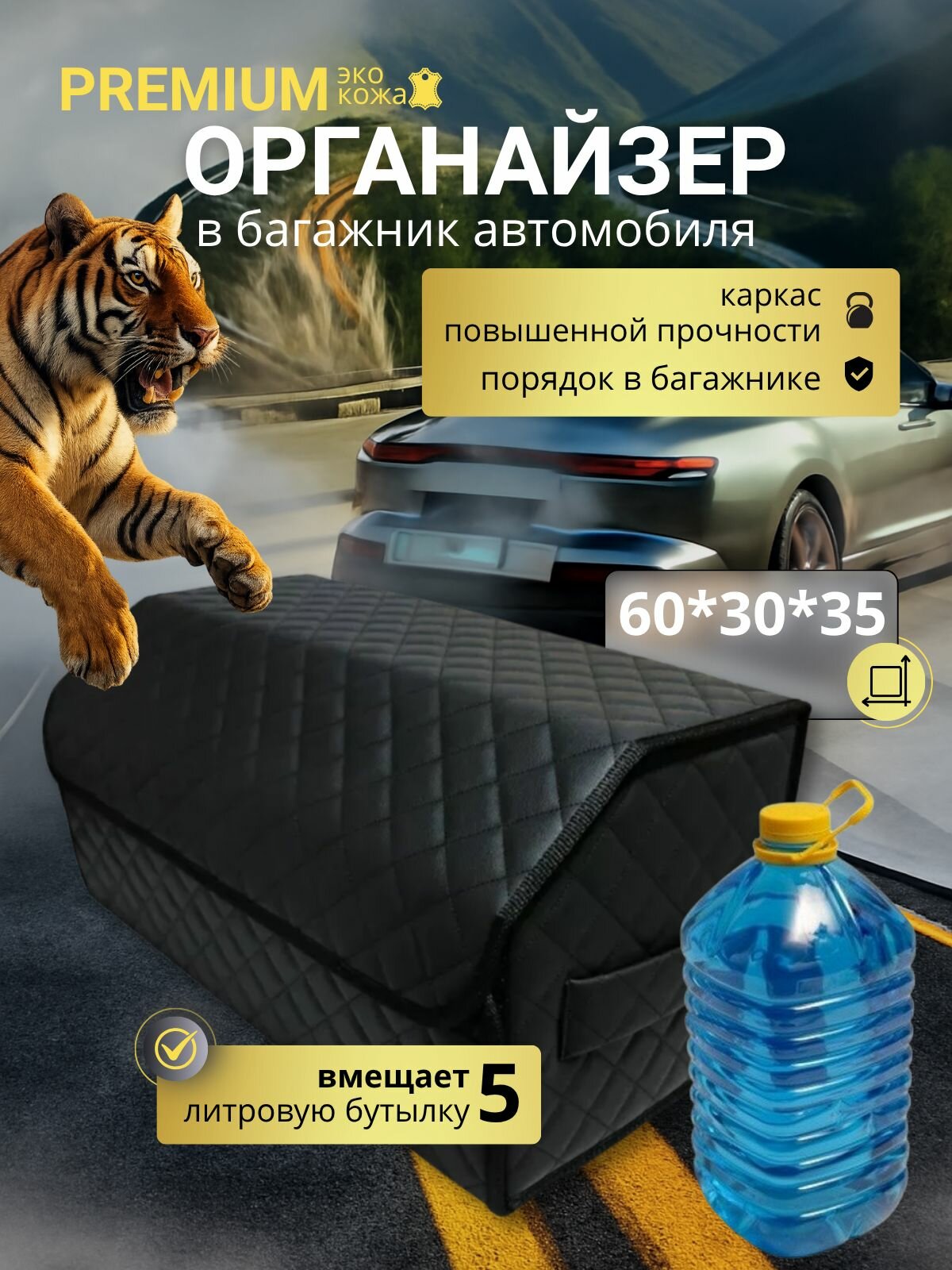 Высокий автомобильный органайзер в багажник машины, 60*30*35 см, рисунок квадрат черный/ строчка черная.: сравнение цен, характеристики, фото, актуальное наличие и цены.